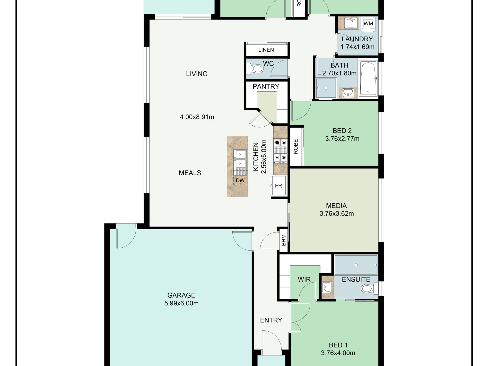 - Two spacious living areas including a dedicated media room plus an open plan kitchen, living and dining zone,