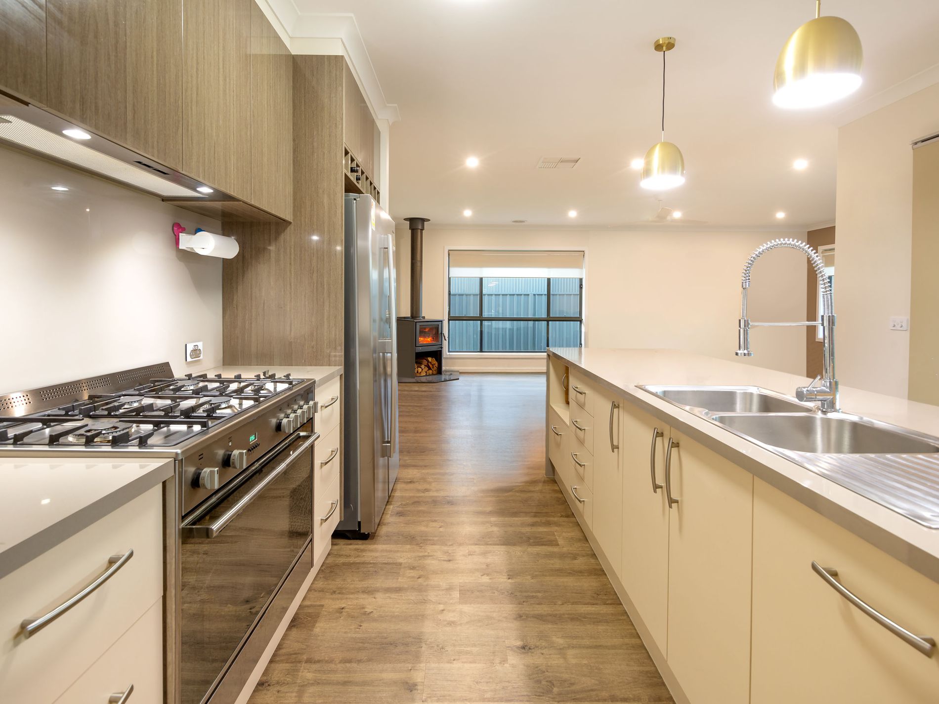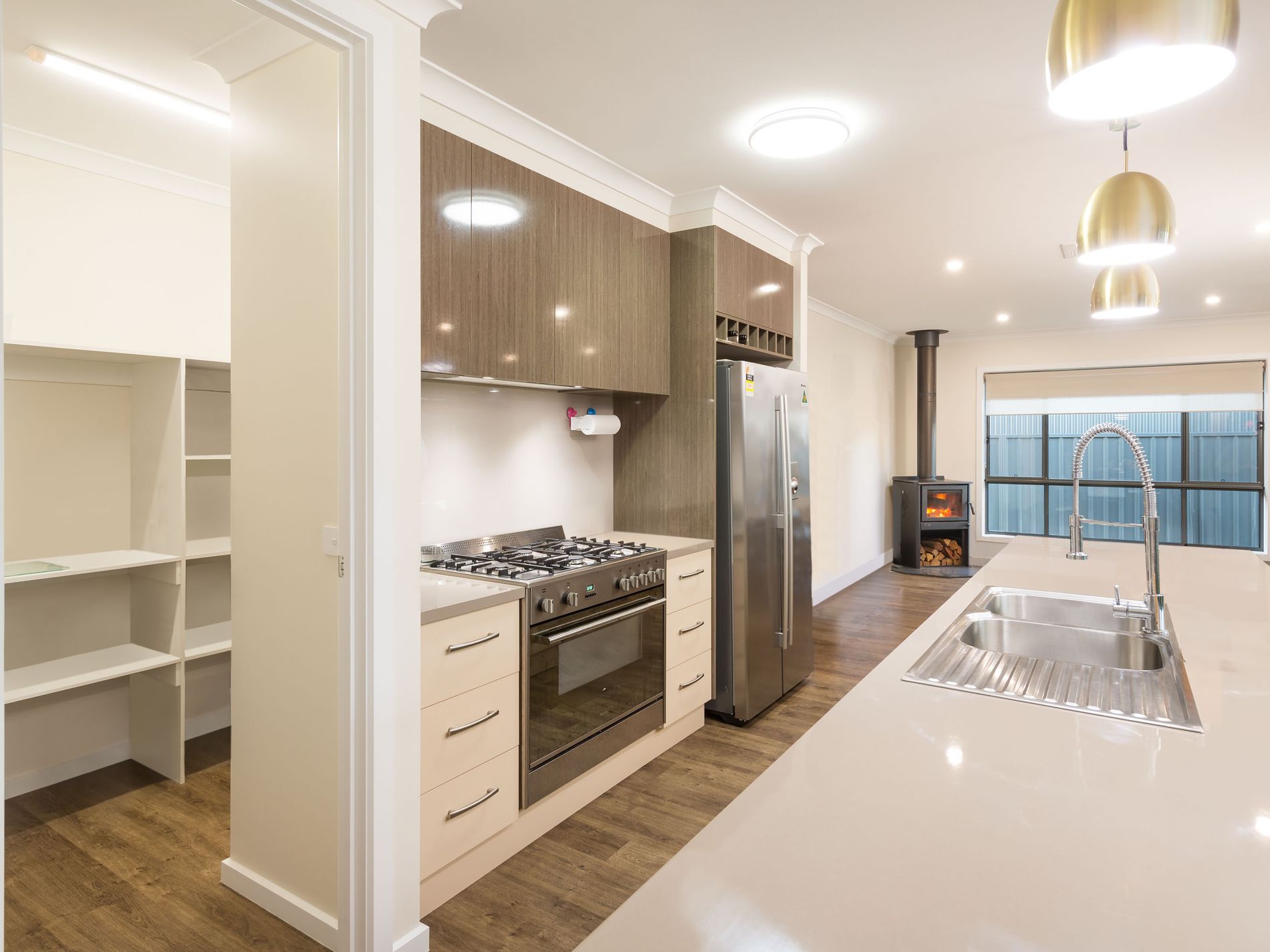 • Open-plan kitchen, living and dining area featuring stainless steel appliances, dishwasher, large island bench, and walk-in pantry
