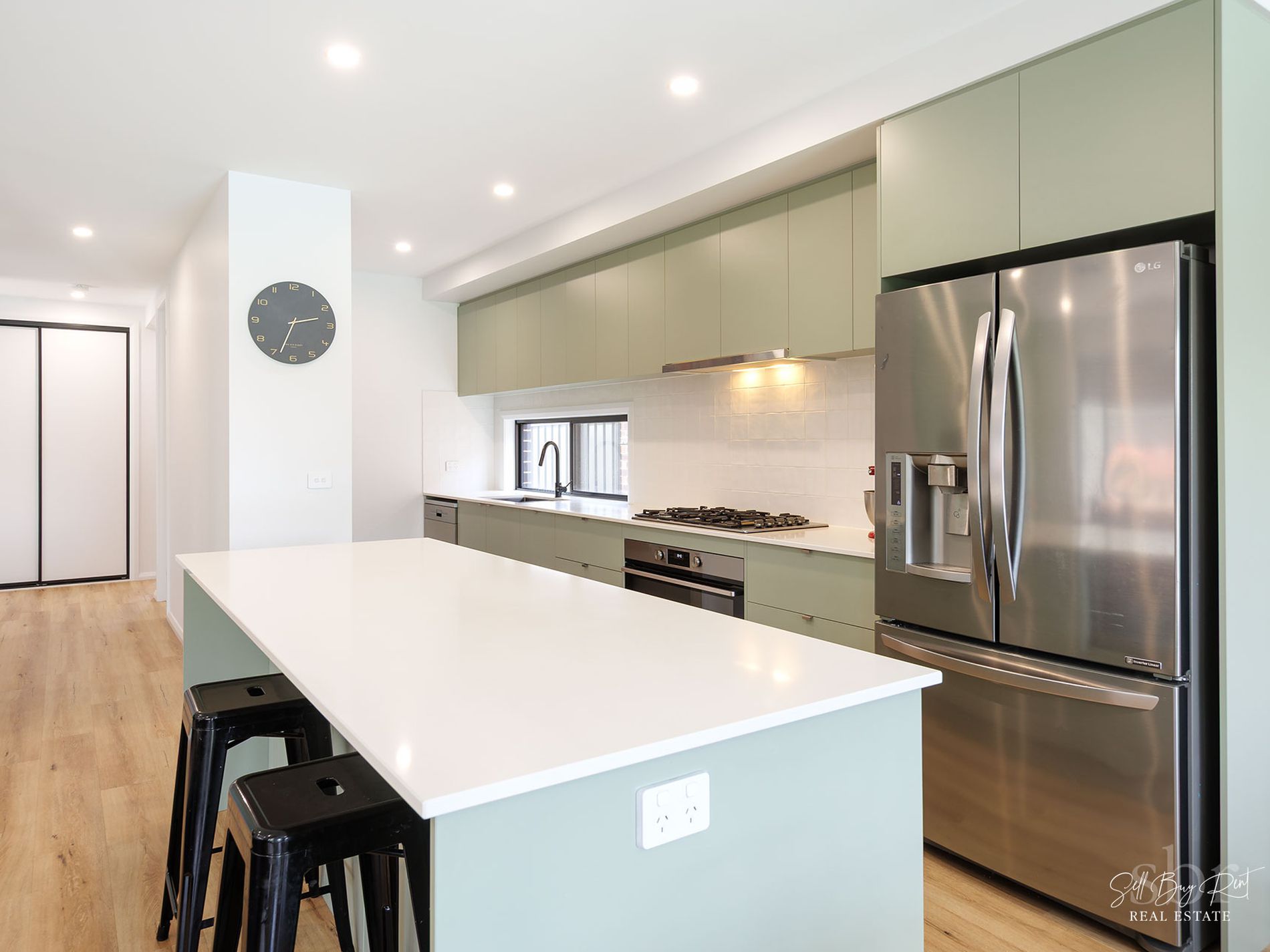 - The kitchen is finished in a soft, on-trend green with stone benchtops, soft-close cabinetry, generous storage, island bench, electric oven, gas cooktop, and dishwasher - ideal for home cooks and entertainers alike.