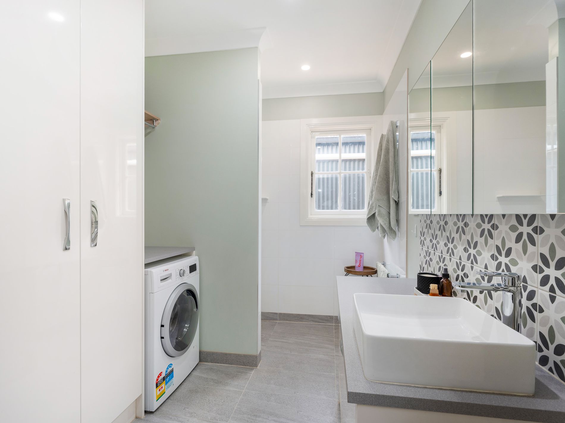• Combined laundry and bathroom for practical living