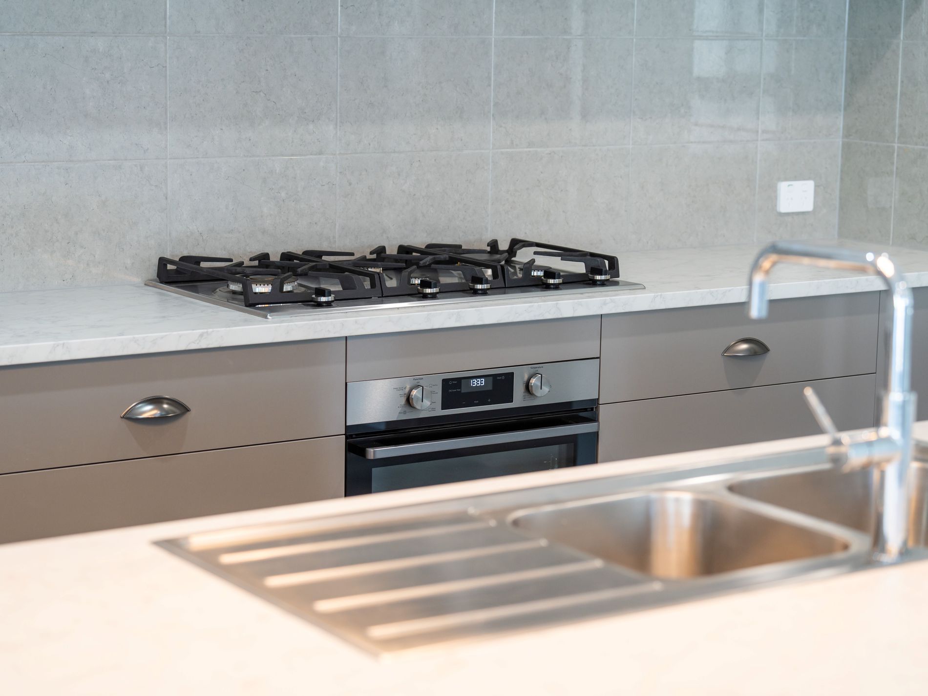 - Modern kitchen boasting gas cooktop, electric oven, dishwasher, island bench and walk in pantry,