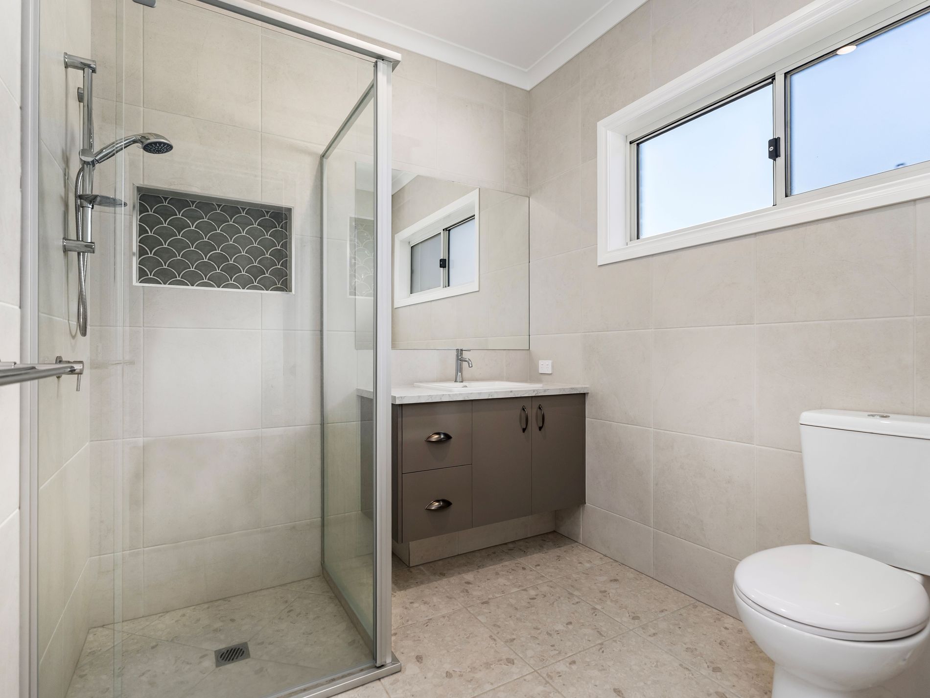 - Master suite with walk in robe and ensuite,