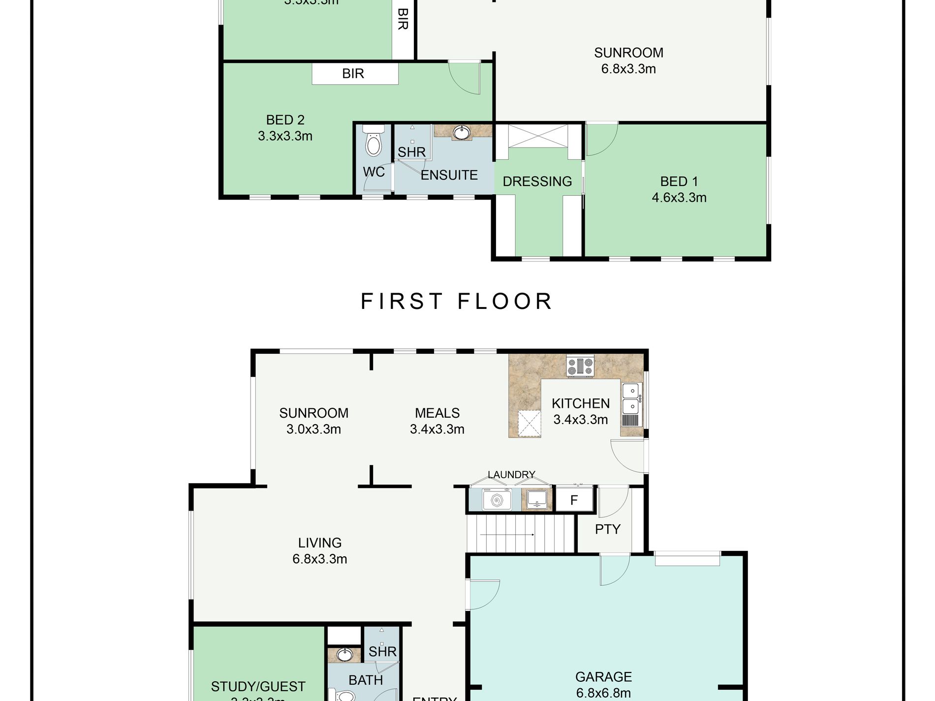 Designed for flexibility and functionality, the home offers four generous bedrooms plus a dedicated study, three bathrooms and multiple living zones — providing space for families, professionals or high-yield accommodation options.